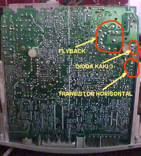 Kalau Transistor Horisontal rusak ganti aja, tapi sebelum menyalakan monitor, solder ulang dulu dioda kaki 3 tersebut yg letaknya di dekat transistor horisontal tersebut.